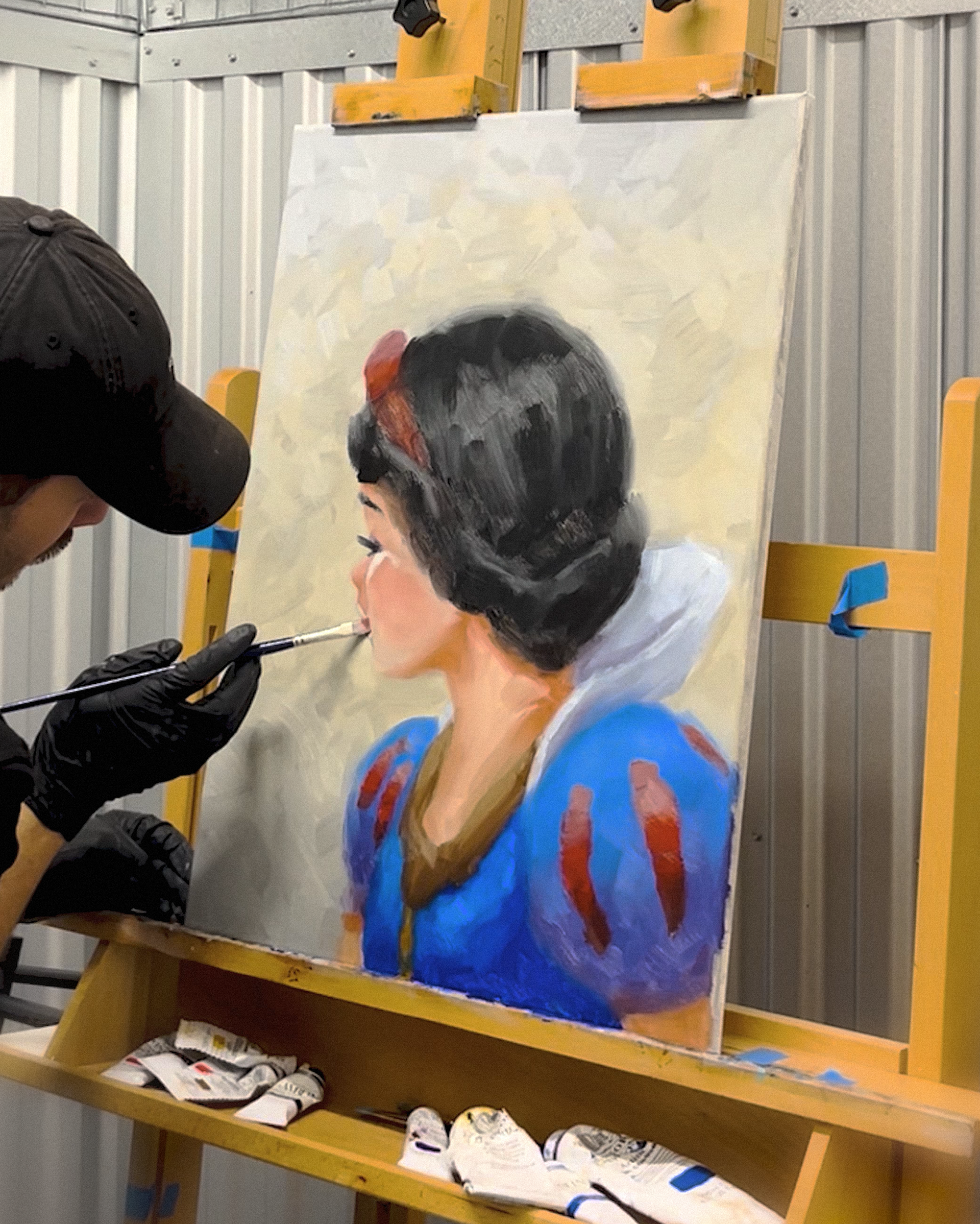 Despite Christophe’s Disney-related upbringing, he never anticipated doing what he does now: painting classical portraits of beloved Disney characters.