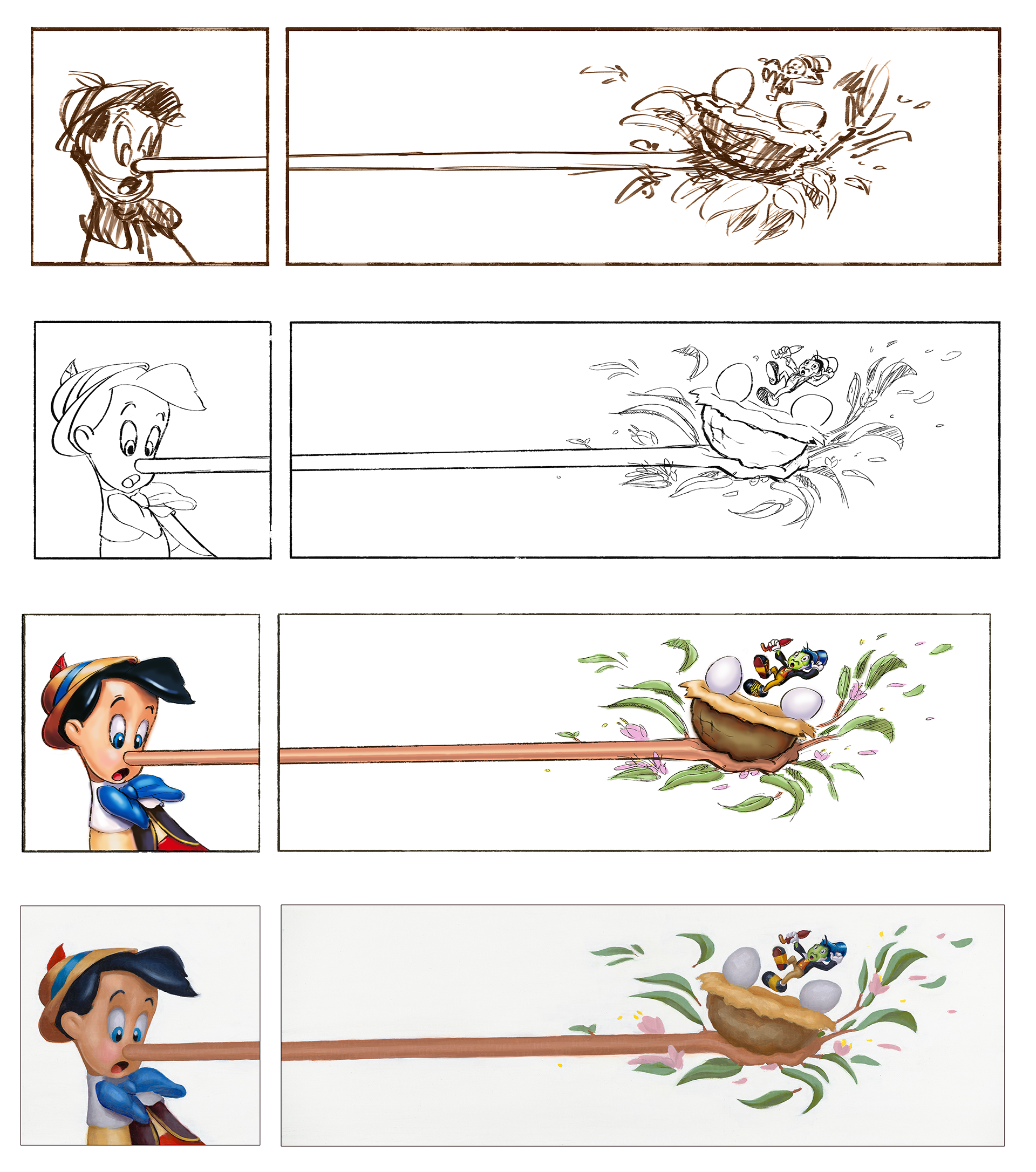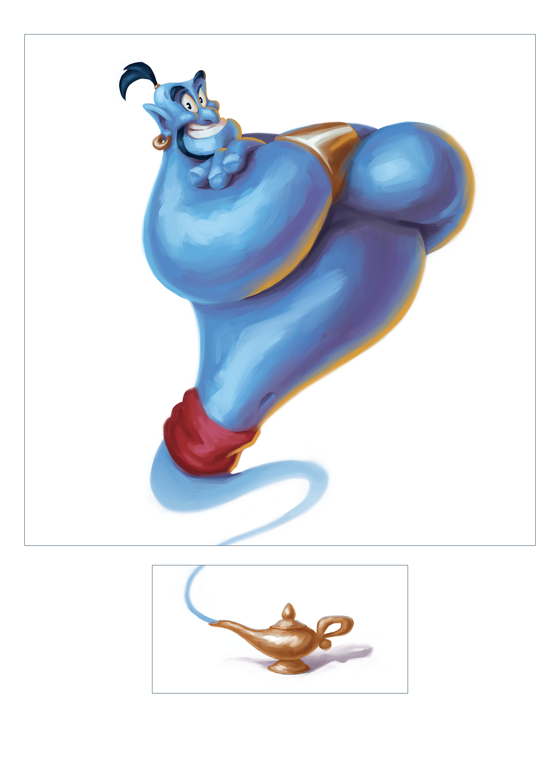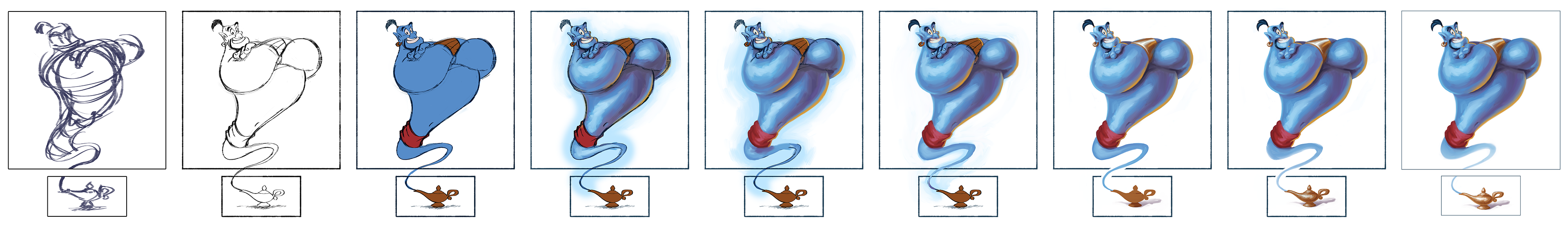 Top to Bottom: Thumbnail, Line, Digital Sketch, Oil